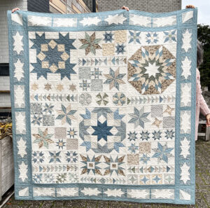 Wie bij ons in de winkel is geweest heeft de ‘Sterrenparade’ quilt van Anke de Haan al zien hangen. Jullie vroegen allemaal om het patroon.