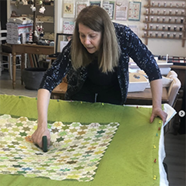 Gerie maakte deze prachtige variatie op de Flower of Life Quilt. Het patroon is van Cosy by Jet en je kunt het in onze webshop