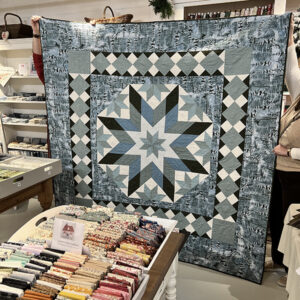 Gerie maakte deze prachtige variatie op de Flower of Life Quilt. Het patroon is van Cosy by Jet en je kunt het in onze webshop