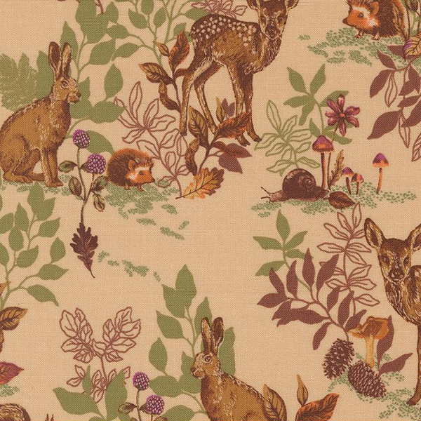 Moda Linn Warme Autumn Forest Sand 14120 12 Woodland Landscape Stof om te Quilten is een beige quiltstof met egeltjes, haasjes en hertjes van 110 cm breed. We hebben nog meer Lyn Warme stofjes in onze webshop. Deze vindt je hier (klik). Wij kunnen de stof voor je op maat snijden! Kijk voor de opties tussen de afmetingen. Wil je een grote hoeveelheid van een stof bestellen, informeer dan eerst even of we nog zoveel op de rol hebben zitten! Wij adviseren altijd ruim voldoende te bestellen! Wil je later nabestellen dan is het mogelijk dat je een kleurverschil hebt wanneer de stof niet van dezelfde rol is. Bovendien zijn niet alle stoffen na te bestellen.